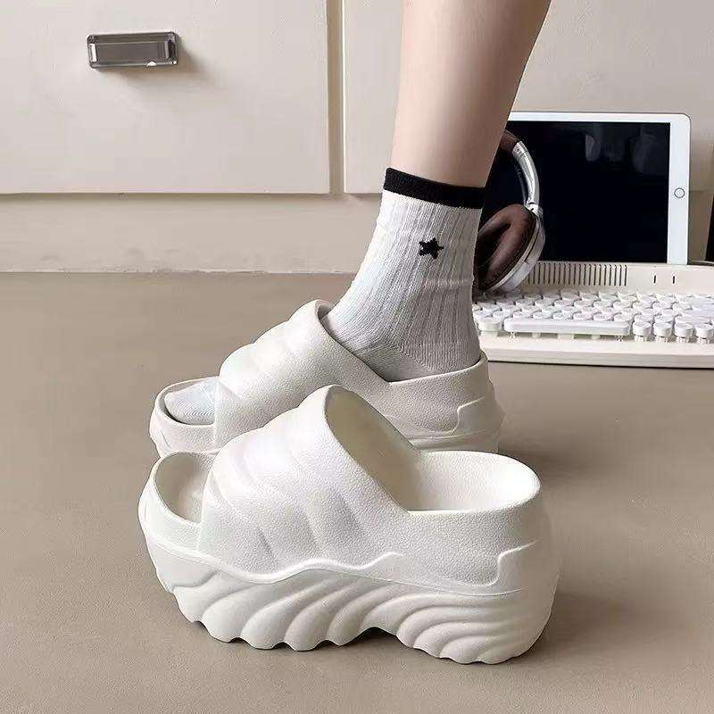 รองเท้าแตะแบบเปิดนิ้วเท้าสำหรับผู้หญิง สวมใส่กลางแจ้ง ฤดูใบไม้ผลิ ฤดูใบไม้ร่วง ฤดูหนาว พื้นหนา สองชั้น ผ้าขนสัตว์ผสมฝ้าย อุ่นสบาย