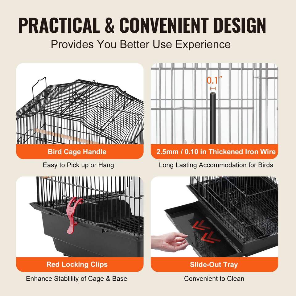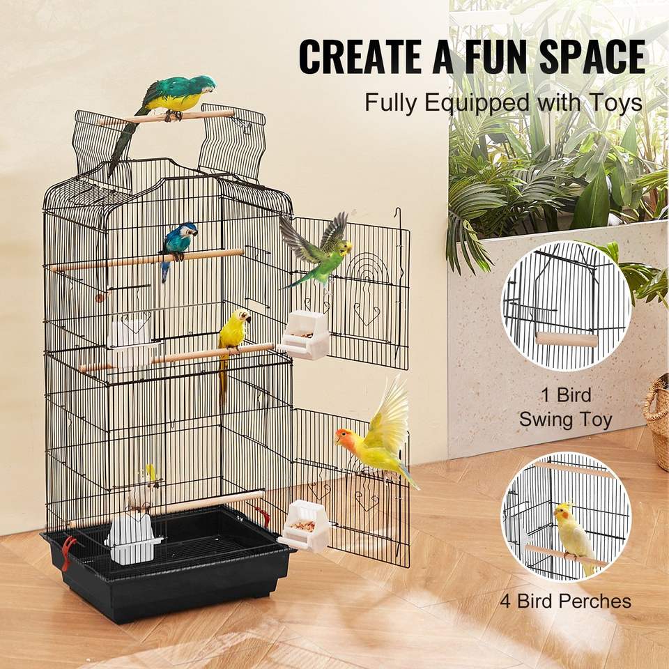 กรงนกขนาดใหญ่ 41 นิ้ว แบบเปิดด้านบน สำหรับนกแก้ว นกฟินช์ นกคีรีบูน นกเลิฟเบิร์ด นกค็อกคาเทล นกบัดจี้ และสัตว์เลี้ยงขนาดเล็กอื่นๆ