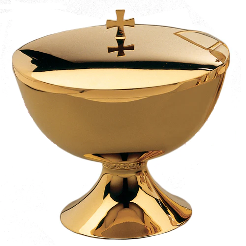 แกะสลัก Ciborium ทรงชามเปิดด้านบน ภายในชามเน้นด้วยการออกแบบงานฝีมือสร้างสรรค์สีทอง