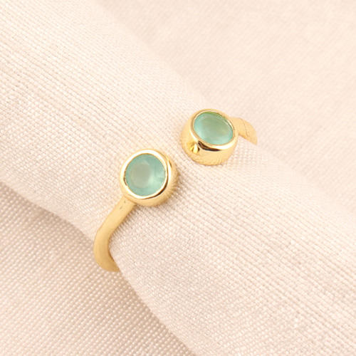 แหวนปรับได้เปิดได้ Aqua Chalcedony เครื่องประดับชุบทองสำหรับเธอซ้อนแหวนเครื่องประดับสำหรับผู้หญิงขายส่งเครื่องประดับ