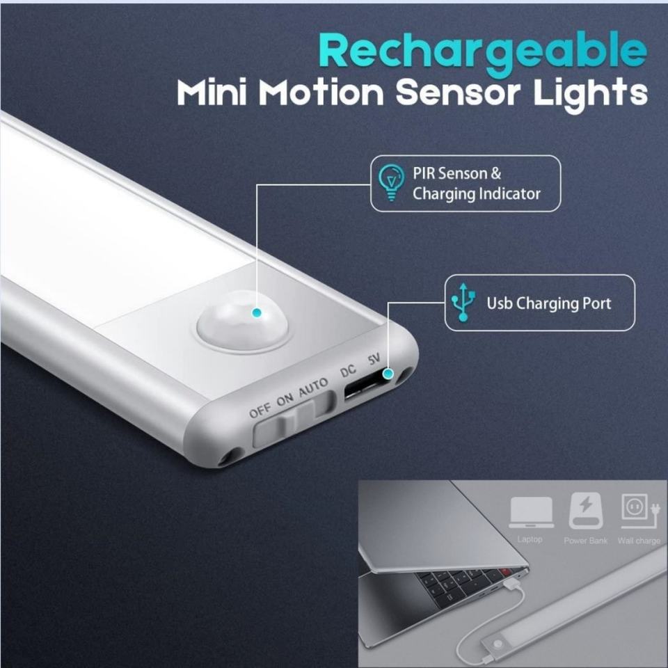 ไฟเซ็นเซอร์ตรวจจับความเคลื่อนไหวแบบแม่เหล็ก ชาร์จผ่าน USB ใช้ในบ้าน สำหรับห้องครัว ตู้เสื้อผ้า ระเบียง ห้องนั่งเล่น ติดตั้งได้ทุกที่