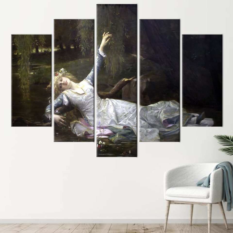 ภาพพิมพ์บนผ้าใบโอฟีเลีย: งานศิลปะตกแต่งผนังสำหรับผู้หญิงที่สง่างาม, ชุด 5 ชิ้น: ภาพพิมพ์แบบห่อหุ้ม
