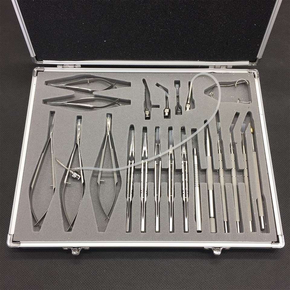 ชุดเครื่องมือผ่าตัดตา21ชิ้นชุดผ่าตัดต้อกระจกไทเทเนี่ยมแบบไม่มีกล่องเครื่องมือสำหรับผ่าตัดดวงตา