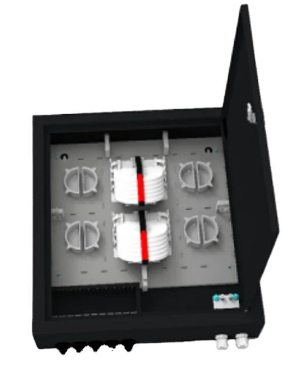 กล่องเก็บสายเคเบิลใยแก้วนำแสงพร้อมข้อต่อยึดผนังและที่ยึดเสาชนิด FTTH FTTx fttb สำหรับใช้โทรคมนาคม