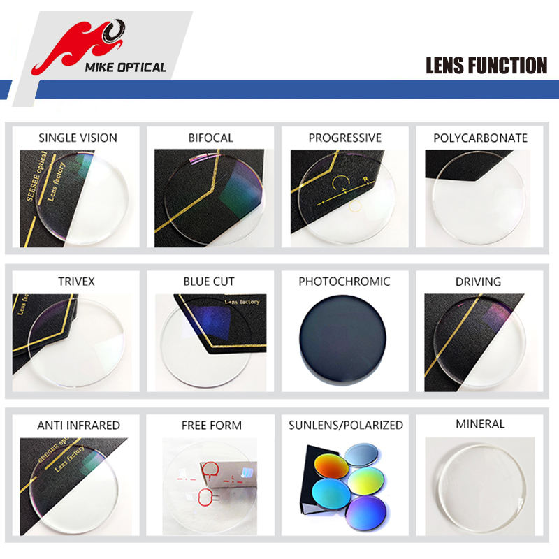 ผู้ผลิตเลนส์ออพติคอล ราคาขายส่งถูก 1.56 เลนส์ใสสำหรับเล่นเกมกลางคืน รุ่น 8016 เคลือบ HMC สีฟ้า