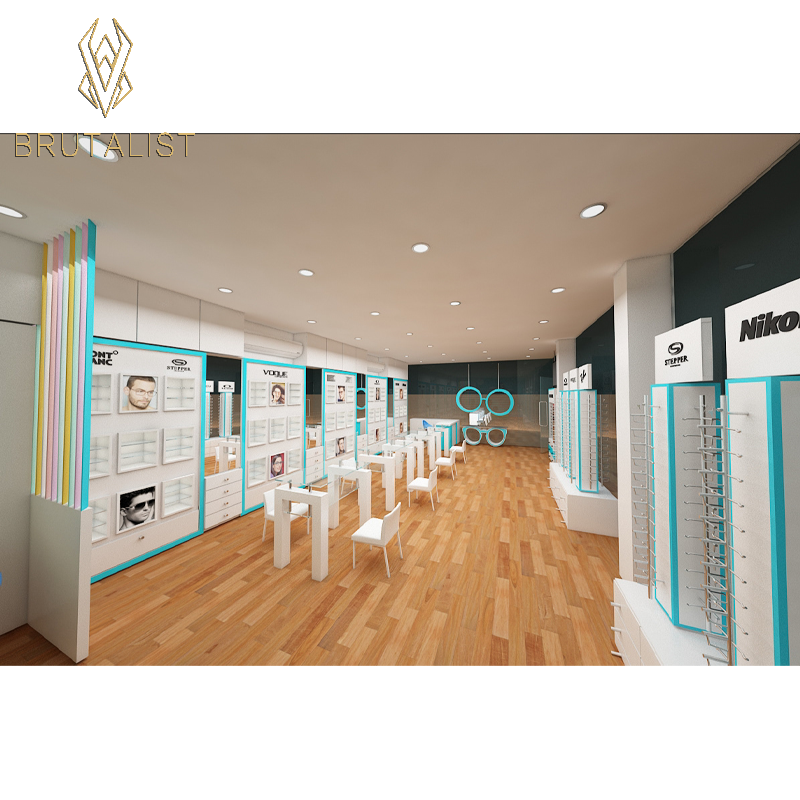 ชั้นวางจัดแสดงสินค้าขายปลีกเชิงพาณิชย์แบบกำหนดเองสำหรับร้านแว่นตากันแดดแบบออปติคอลแท่นวางออกแบบภายในสำหรับโชว์