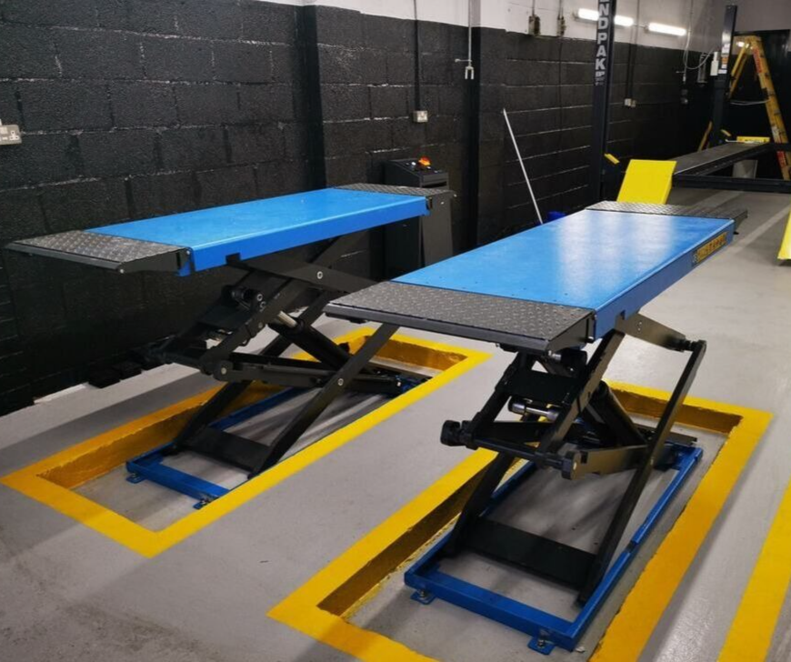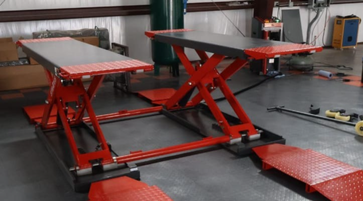 ชุดอุปกรณ์ยกยานยนต์แบบ 4 เสา พร้อมเครื่องตั้งศูนย์ถ่วงล้อ ประกอบด้วยลิฟท์ยกรถไฮดรอลิก 4 เสา 3 ระดับ