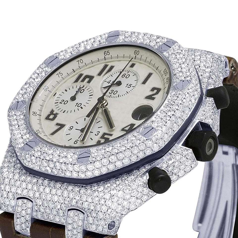 นาฬิกาสแตนเลสสตีลหรูหราเรียบง่ายประดับด้วยโมอิสซาไนต์ ให้ความเปล่งประกายระยิบระยับ พร้อมกลไกอัตโนมัติ
