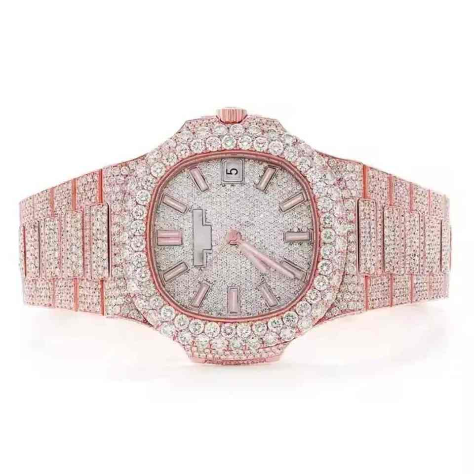 นาฬิกาสแตนเลสสตีลมอสซาไนต์ที่เปล่งประกายเปล่งประกายพร้อมดีไซน์ควอตซ์สุดคลาสสิก
