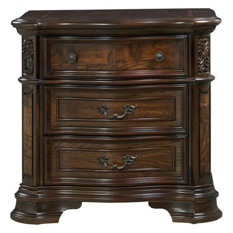 หรูหราโต๊ะข้างเตียงทำจากไม้มะฮอกกานีโต๊ะข้างเตียงแกะสลักด้วยมือสีน้ำตาลเข้มหรูหราที่เก็บของในห้องนอน