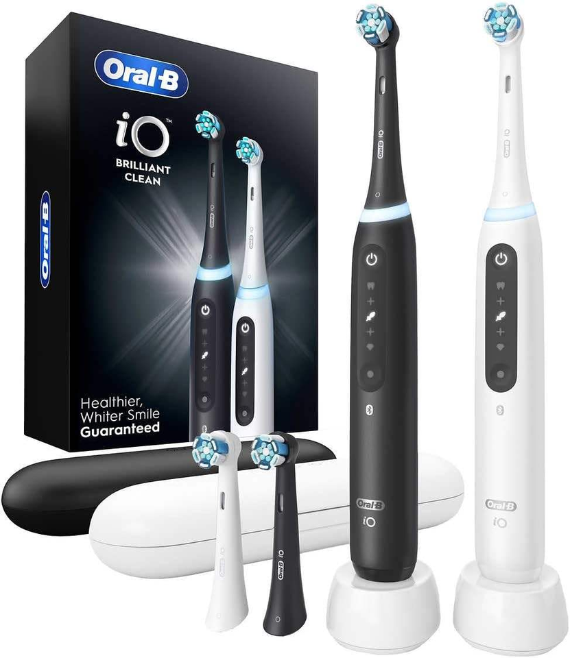 Oral-B IO 5แปรงสีฟันไฟฟ้า2แพ็คพร้อมหัวขนแปรงสำหรับใช้ในครัวเรือนและรถยนต์