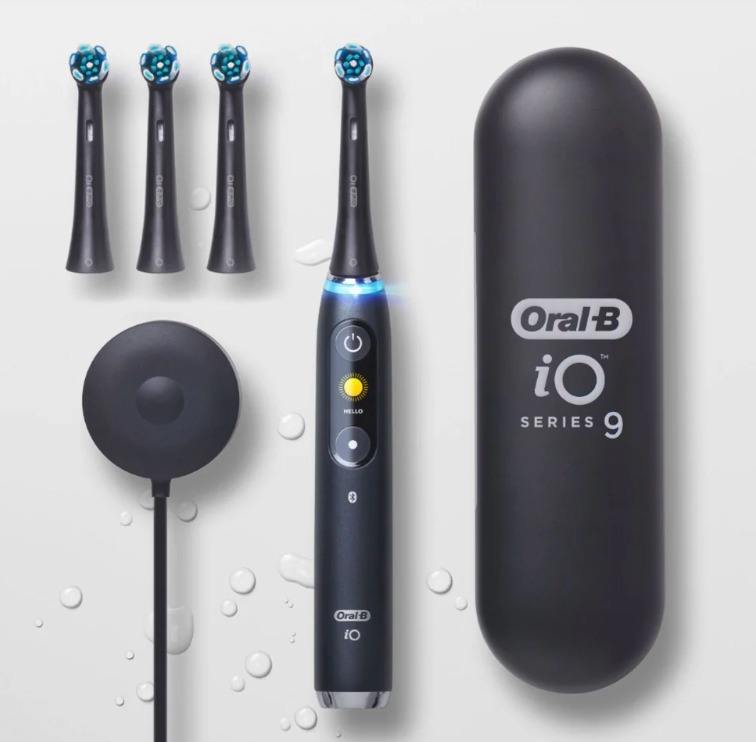 แปรงสีฟันไฟฟ้า9ชุดแปรงสีฟันสำหรับเด็กสีดำพร้อมหัวแปรงอัลตราโซนิค4หัวสำหรับดูแลช่องปาก