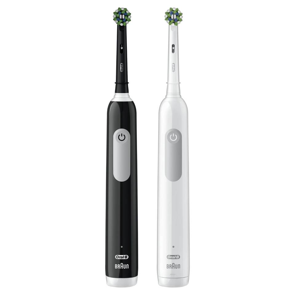 แปรงสีฟันไฟฟ้า CrossAction 1000 Oral-B Pro แบบชาร์จได้สีดำและสีขาว2จำนวน