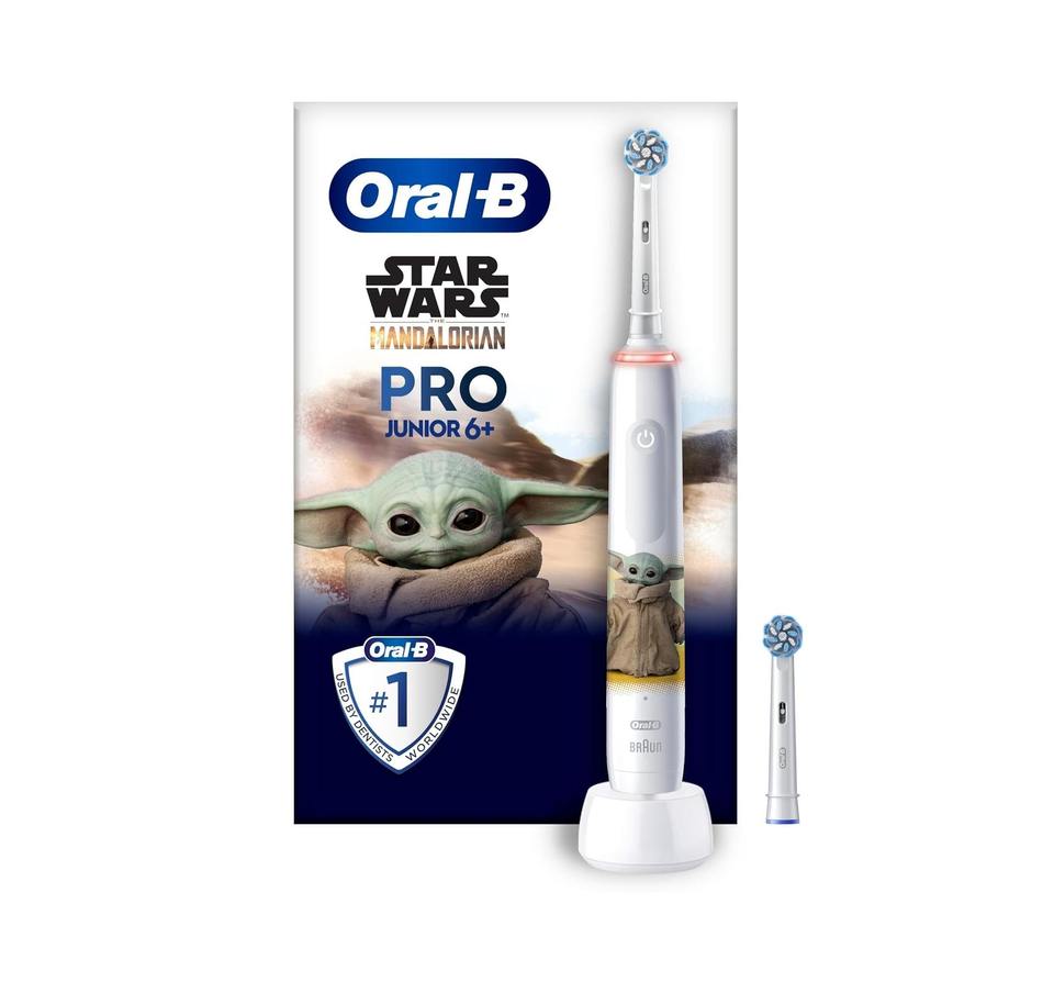แปรงสีฟันไฟฟ้า Oral-B Pro Junior สำหรับเด็กอายุตั้งแต่6ปีแปรงทดแทน2ชิ้นควบคุมแรงดัน360