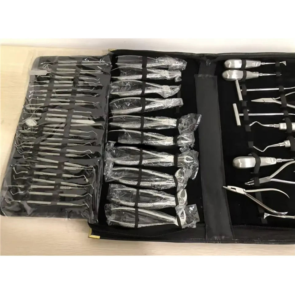 ชุดเครื่องมือผ่าตัดถอนฟันแบบใช้มือ ทำจากเหล็กกล้าไร้สนิมเยอรมัน พร้อมกระเป๋าหนัง