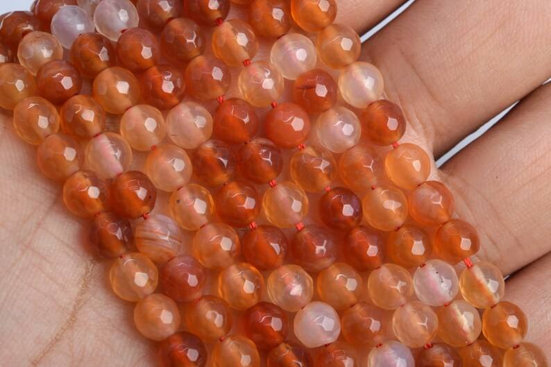 ลูกปัดอาเกตสีส้ม พลอยธรรมชาติ ร้อยเป็นเส้น ลูกปัดกลมเหลี่ยมเล็กๆ ขนาด 15 นิ้ว จำนวนมาก ขายส่ง