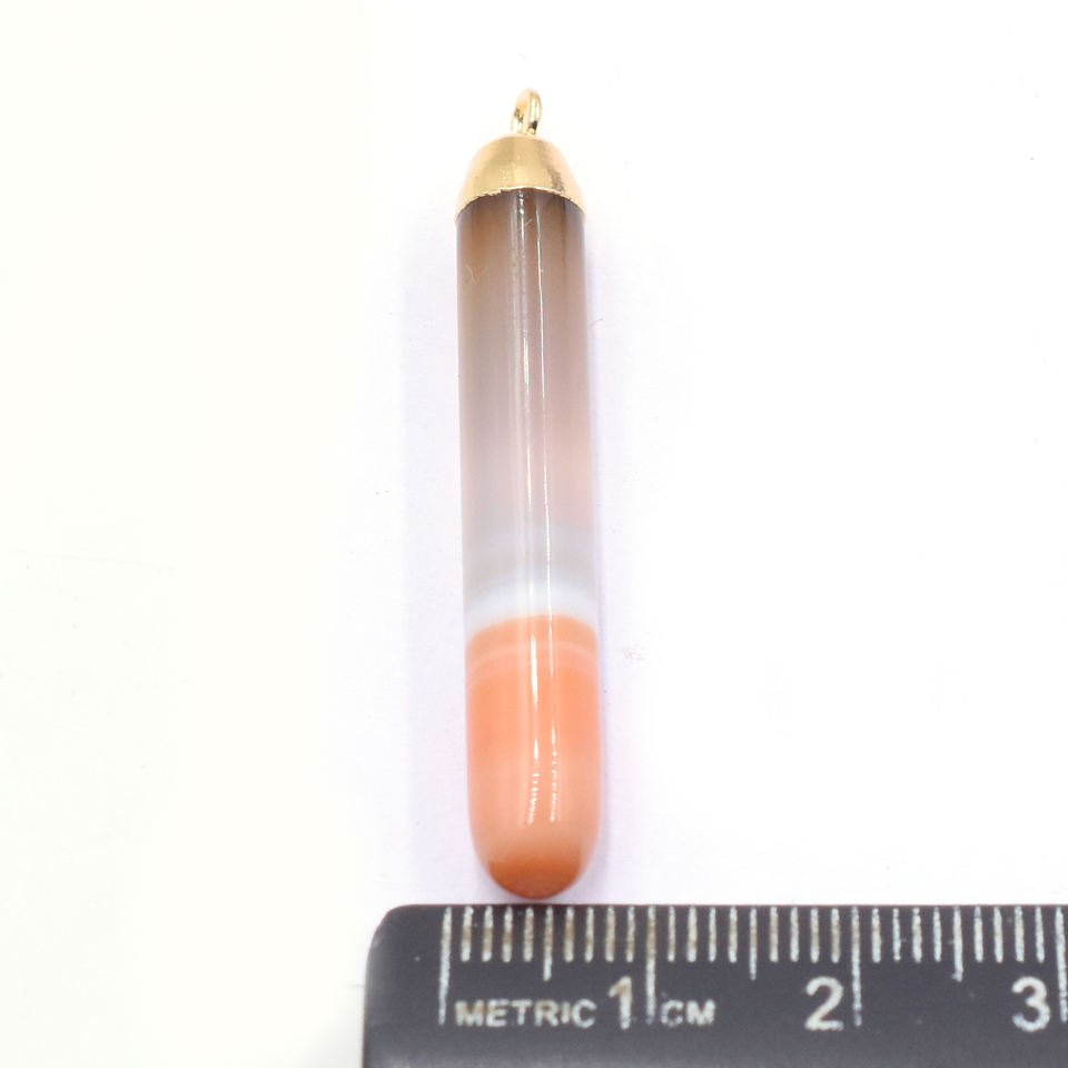 ชื่อสินค้า:จี้ชุบทองทรงวงรีลายแถบสีส้มจากหินโมรา