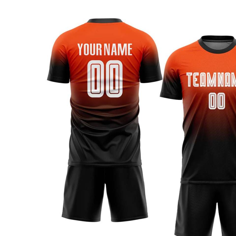 ชุดฟุตบอลสีส้มดำ เสื้อและกางเกงขาสั้น ชุดฟุตบอลสำหรับฝึกซ้อมสโมสร แข่งขันลีก และการเล่น
