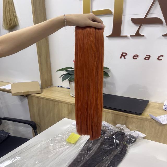 ผมต่อแบบตรงสีส้มธรรมชาติสำหรับผู้หญิงผิวสีดำ วิกผมแบบถักทอสองชั้นด้วยเครื่องจักร