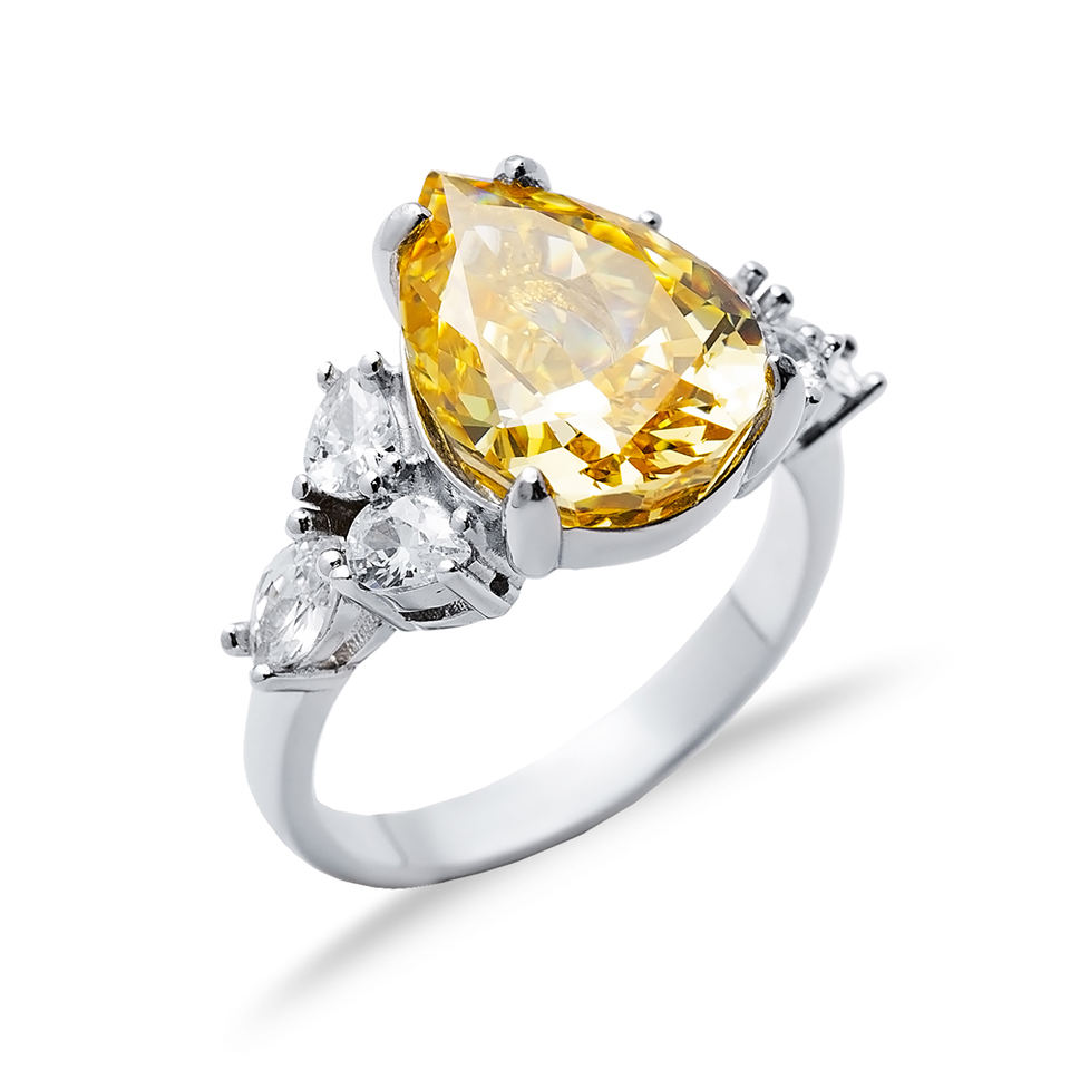 แหวนเพทายดีไซน์รูปลูกแพร์สีส้มสำหรับ925เงินสเตอร์ลิงเครื่องประดับแบบตุรกี