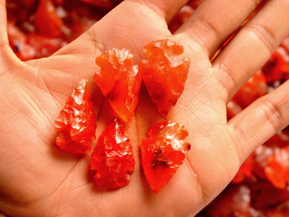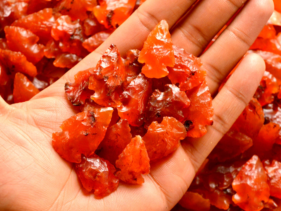 หัวลูกศรปลายแหลมคาร์เนเลี่ยนสีส้มสำหรับทำเครื่องประดับและหุ้มลวดแกะสลักหินตกแต่งด้วยลูกศรคาร์เนเลียนหยาบแบบธรรมชาติ