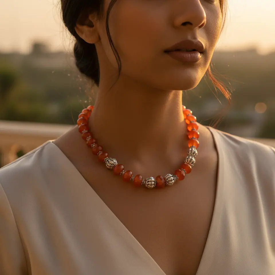 Orange Carnelian Bead Necklace with Sterling Silver Accents Fashion Beaded Gift Necklace