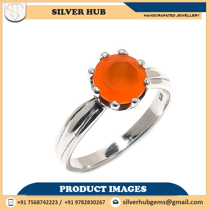 แหวน925อัญมณีสเตอร์ลิงสีส้มทำด้วยมือ