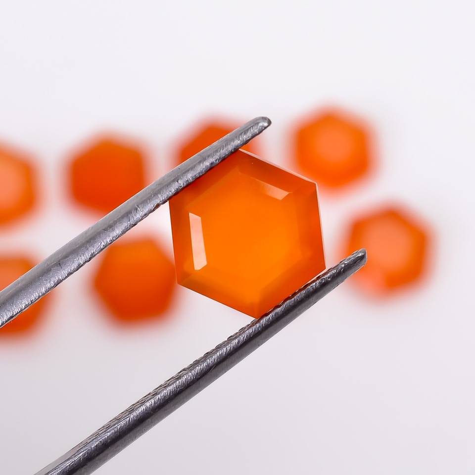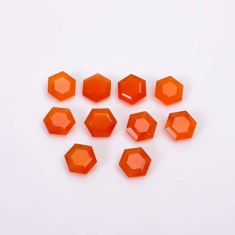 อัญมณีทรงหกเหลี่ยมสีส้มคาร์เนเลียนพลอยธรรมชาติคาร์เนเลี่ยนอัญมณีหลวมสำหรับทำเครื่องประดับอัญมณีตัดเหลี่ยมเพชรพลอยเทียบขนาด