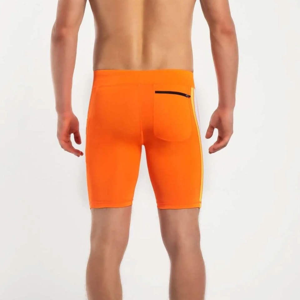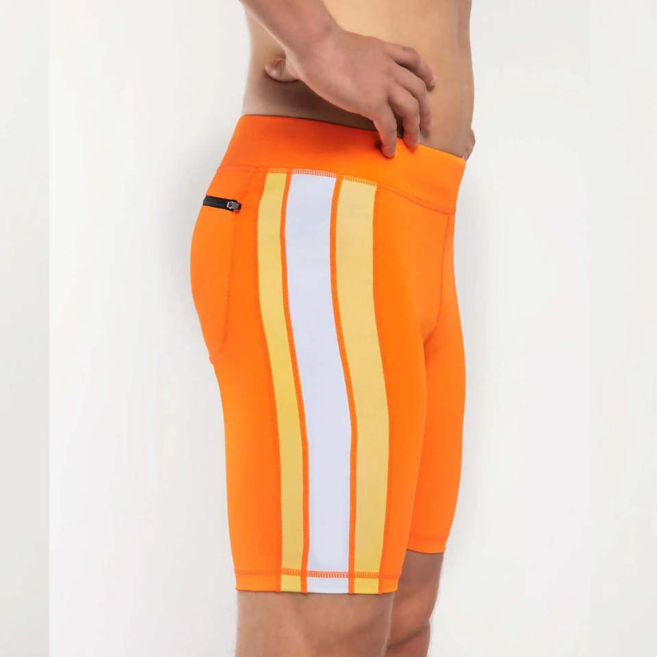 กางเกงขาสั้นผ้ารัดรูปสีส้มสำหรับผู้ชาย เนื้อผ้านุ่ม ยืดหยุ่น กระชับ ราคาถูก รับผลิตตามแบบ OEM