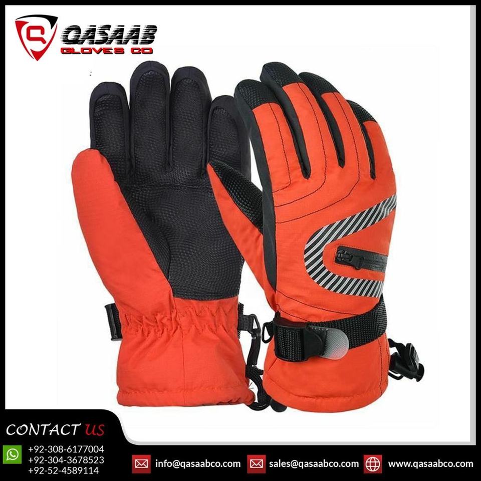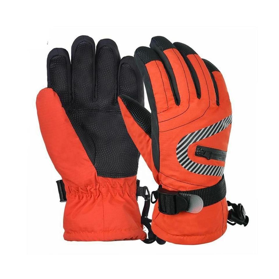 ถุงมือกันลมหน้าจอสัมผัสสำหรับเด็กสีส้มสำหรับฤดูหนาว-ถุงมือสกีห้านิ้วสำหรับเด็กชายและเด็กหญิงสำหรับเล่นกีฬากลางแจ้ง