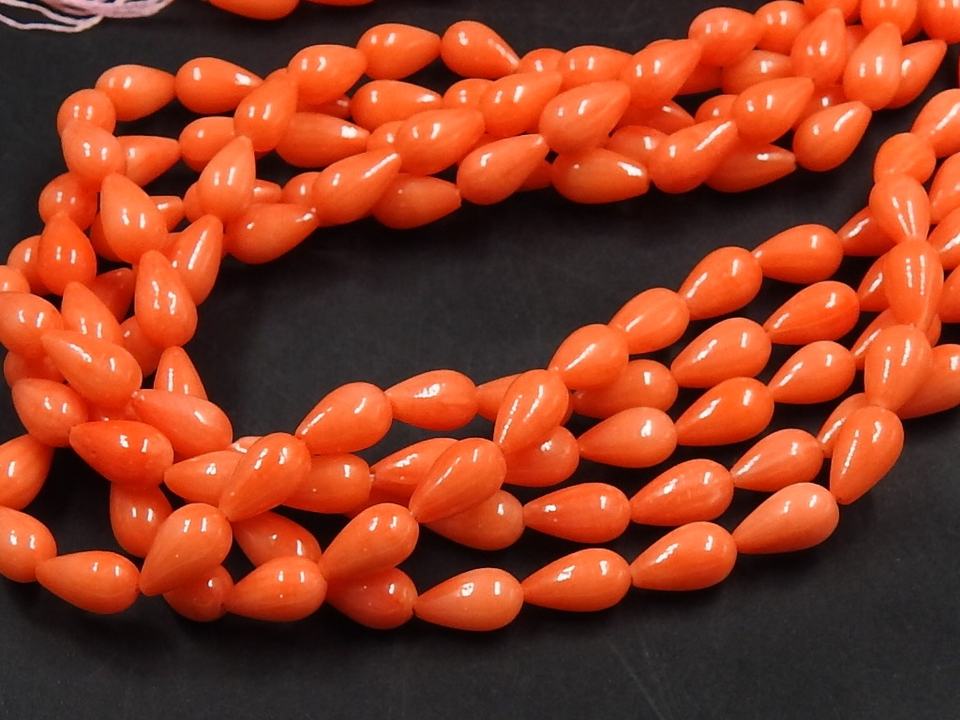 ลูกปัดปะการังสีส้มขัดเงาเรียบ ทรงหยดน้ำยาว 16 นิ้ว 9x5 มม. ประมาณ ได้รับการรับรองสำหรับทำเครื่องประดับ ขายส่งเปลือกหอยและกระดูก