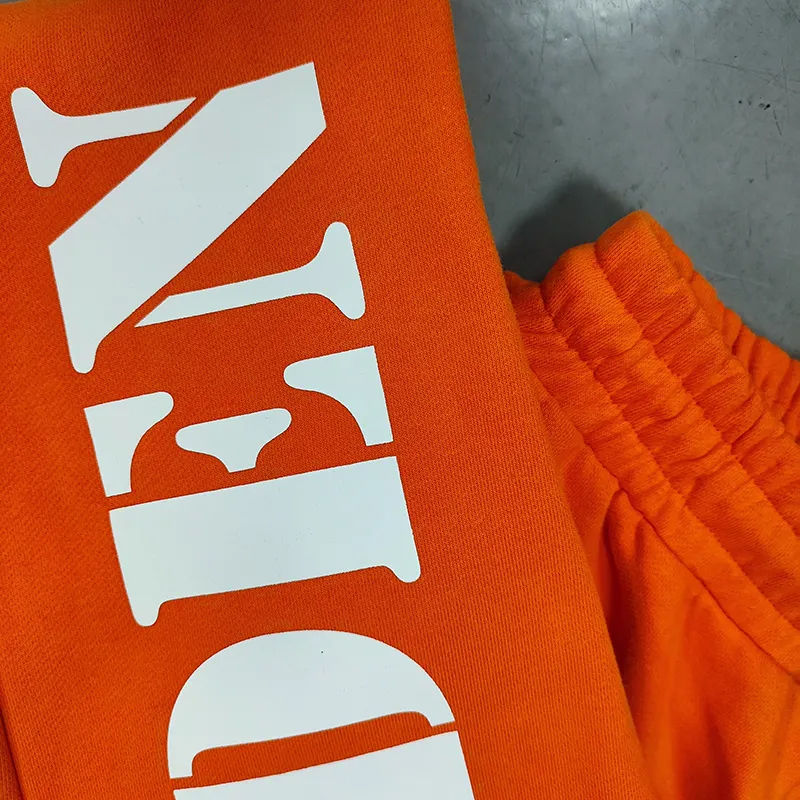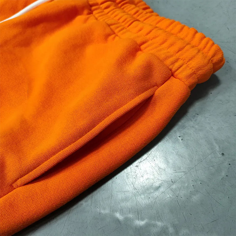 กางเกงวอร์มผ้าคอตตอนสีส้มกางเกงลำลองแนวสตรีทผ้ากำมะหยี่ปักลายด้วยกำมะหยี่ออกแบบให้เป็นกรดสำหรับทิ้งขยะแบบร่าง