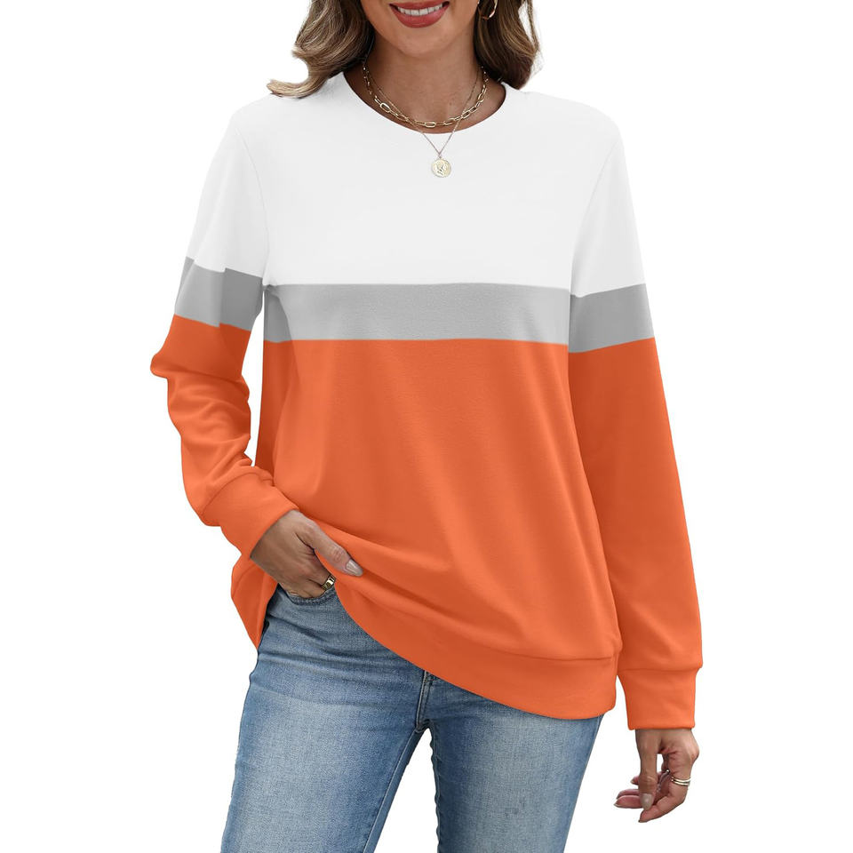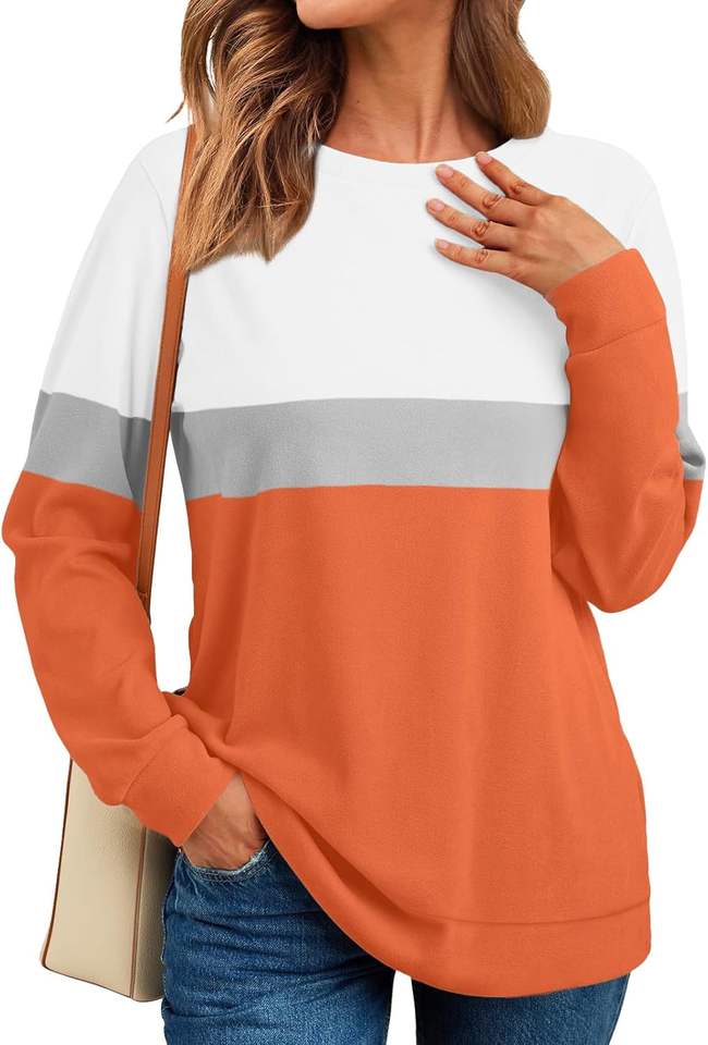 เสื้อสเวตเชิ้ตคอกลมสีส้มสำหรับผู้หญิง เสื้อแขนยาวเรียบง่ายทันสมัยสำหรับผู้หญิง มีกระเป๋า แฟชั่น