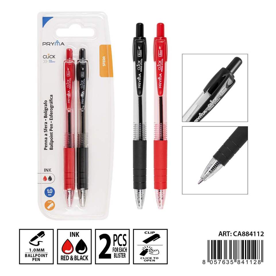 ปากกาพลาสติก1มม. แนวสปอร์ตสีส้มแพ็ค2แพ็คสีดำและสีแดงคลิกปากกาพร้อมเครื่องเขียนขนาด0.5มม. & 1.0มม.