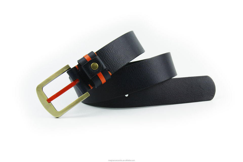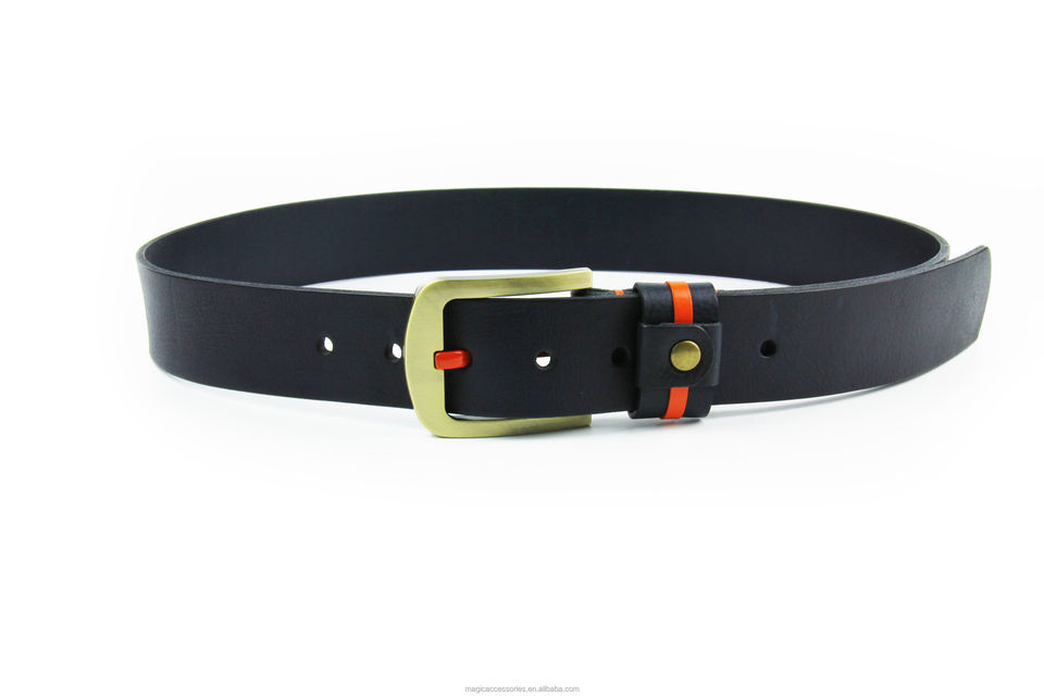 เข็มขัดหนังแท้สีส้มแบบกำหนดเองสำหรับผู้ชาย หัวเข็มขัดโลหะผสมทรงสี่เหลี่ยมแบบสบายๆ พร้อมหมุด ทนทาน GENTS GARB