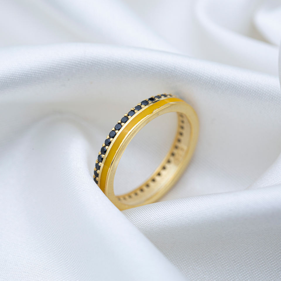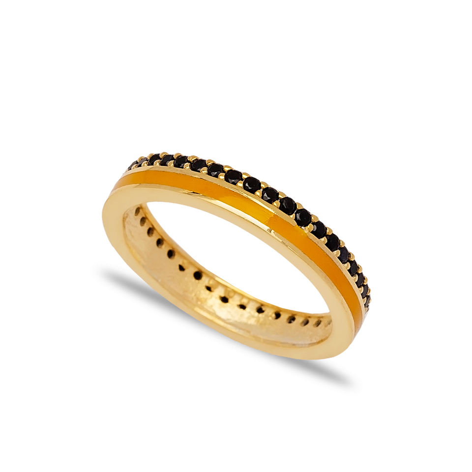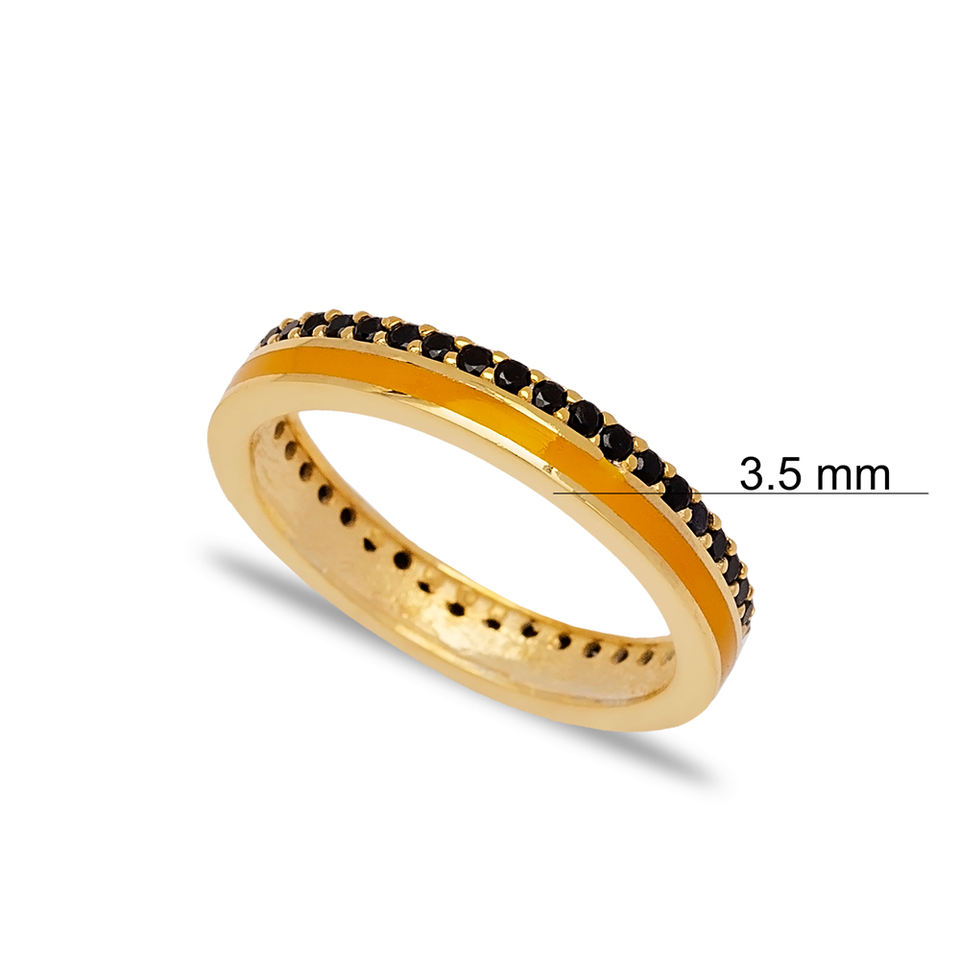 Orange Enamel Design Black Zircon Stone Band Ring Turkish Handmade Wholesale 925 Sterling Silver Jewelry