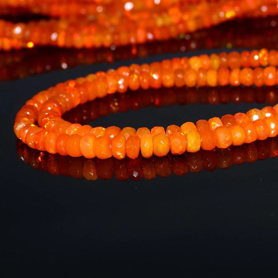 ลูกปัดโอปอลเอธิโอเปียสีส้มลูกปัดโอปอลเจียระไนลูกปัดลูกปัดไฟโอปอล4-6มม. ลูกปัดโอปอลเอธิโอเปีย