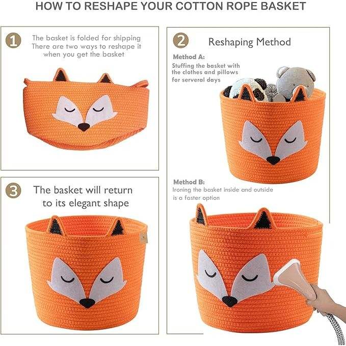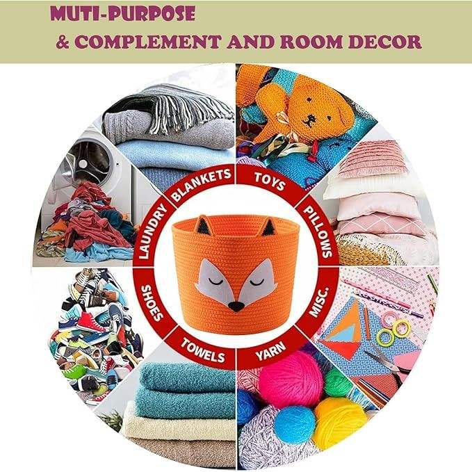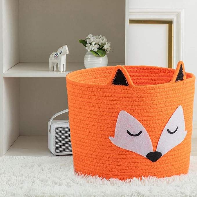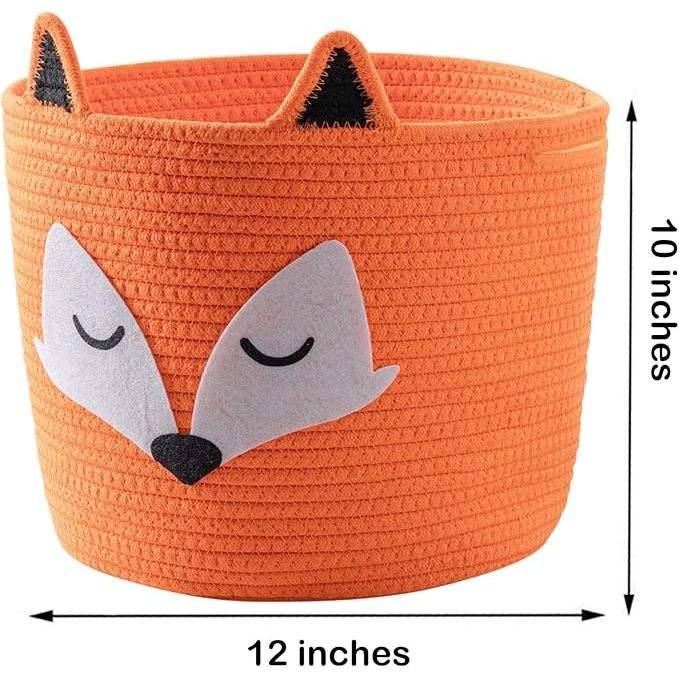Orange Fox Basket Woven Cotton Rope Storage Organizer for Baby Nursery Practical Tool for Sorting Toys and Clothes