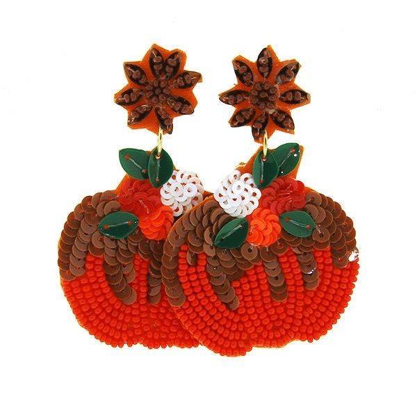 ต่างหูห้อยลูกปัดฟักทองสีส้มฮาโลวีนต่างหูทำมือจากอินเดียสำหรับผู้หญิงและเด็กผู้หญิงคุณภาพสูง