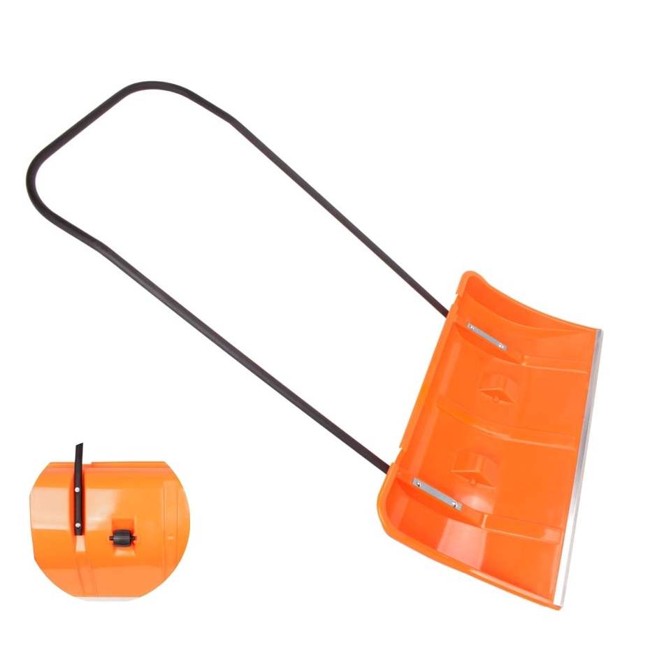 ที่ดันหิมะสีส้มสำหรับงานหนักพร้อมล้อขนาดเล็กใบมีด82x43ซม. และที่จับเหล็กสำหรับการสั่งซื้อพลั่วจำนวนมาก