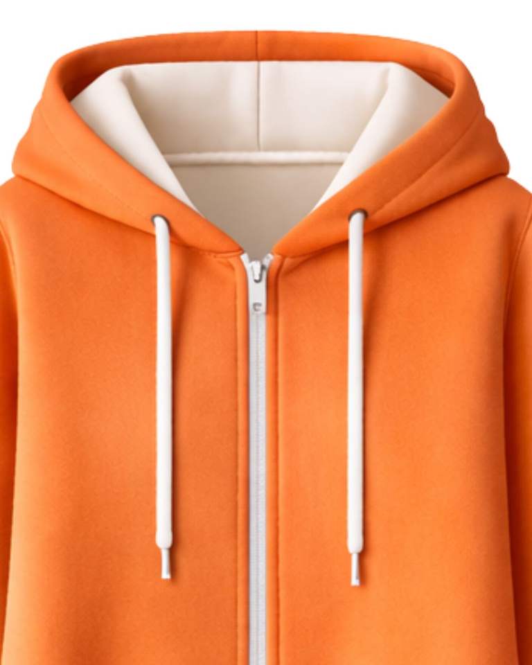 เสื้อฮู้ดซิปยาวสีส้มสำหรับผู้หญิง เสื้อกันหนาวผ้าฟลีซมีฮู้ดพร้อมกระเป๋าจิงโจ้ เสื้อคลุมลำลองอุ่นสบาย รับผลิตตามแบบ OEM จากโรงงาน