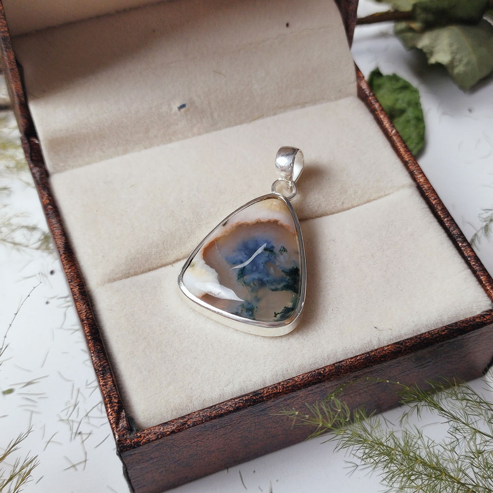 จี้รูปสามเหลี่ยมประดับพลอยสีส้มมอสอาเกต – เครื่องประดับเงินแท้ 925 ขายส่ง