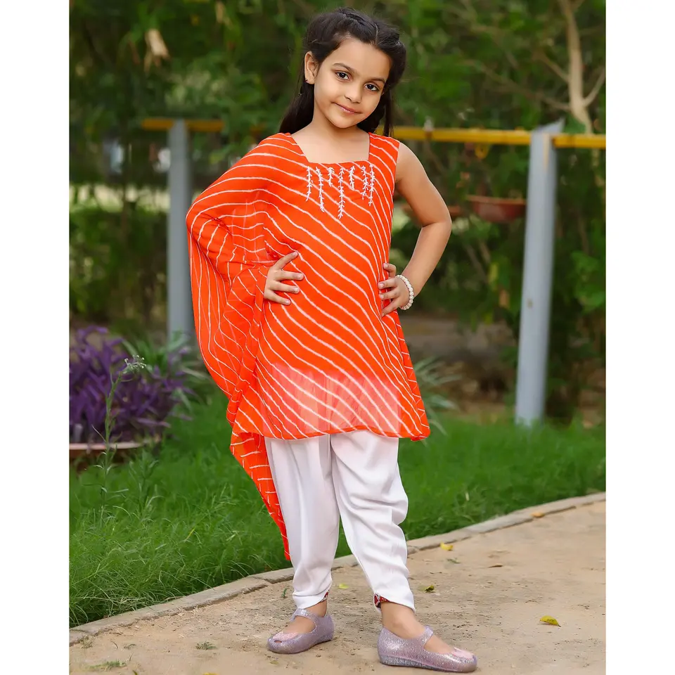 ชุดคาฟตันผ้าชีฟองสีส้มแบบด้านเดียวสำหรับผู้หญิง