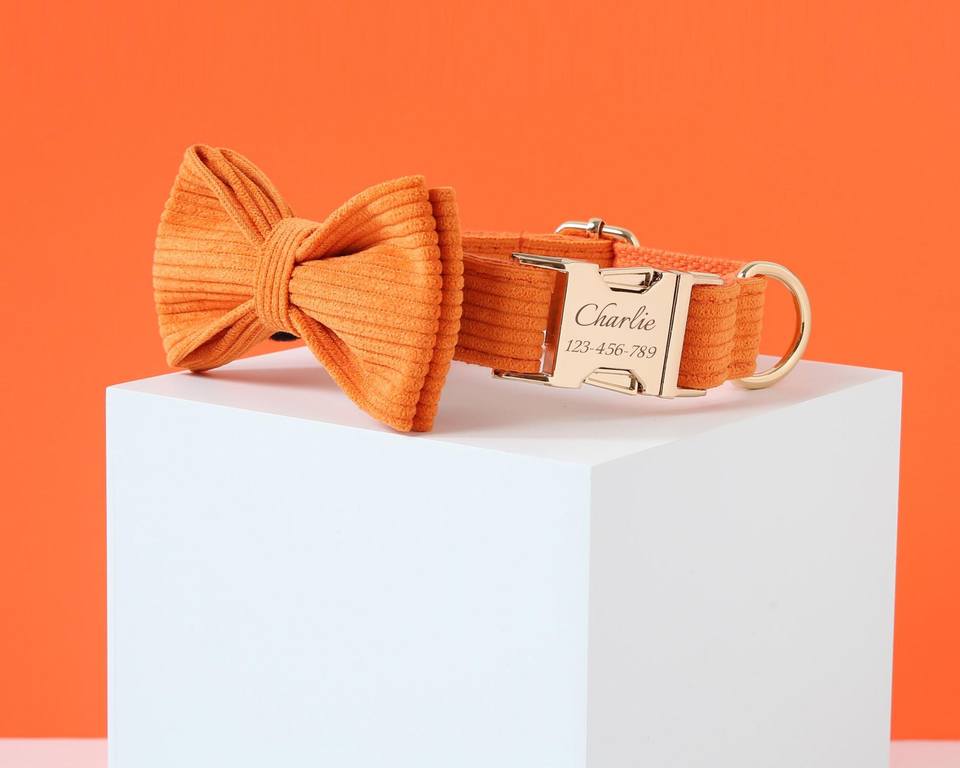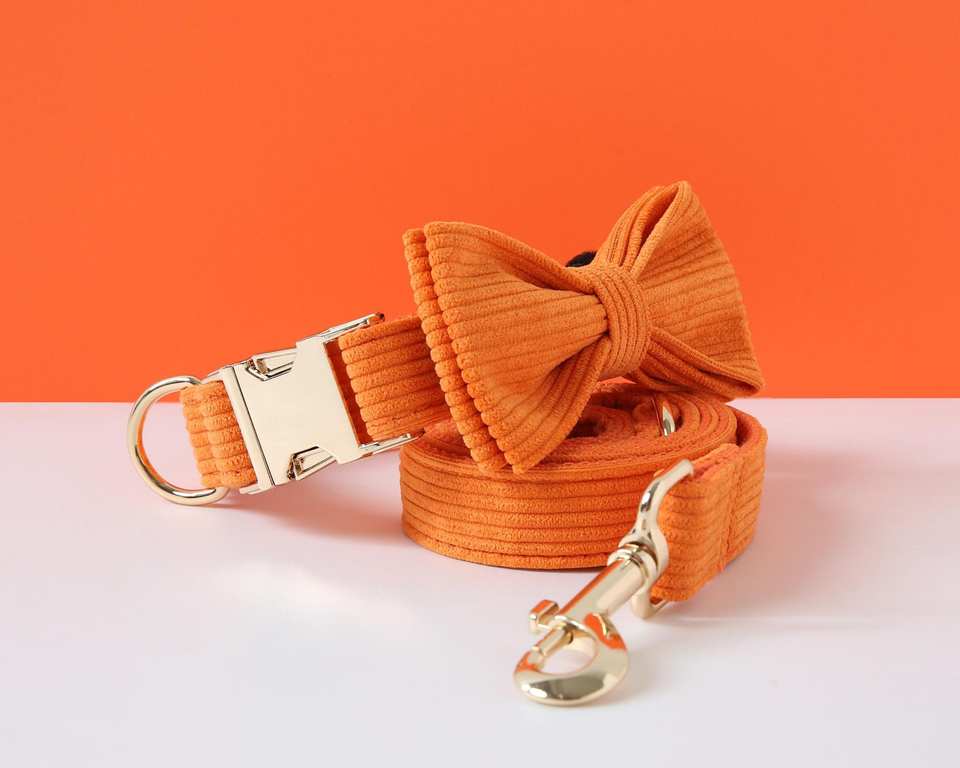 ชุดปลอกคอและสายจูงสุนัขแบบยุทธวิธีสีส้มพร้อมโบว์สำหรับลูกสุนัขวัสดุไฟเบอร์ จัดส่งฟรี