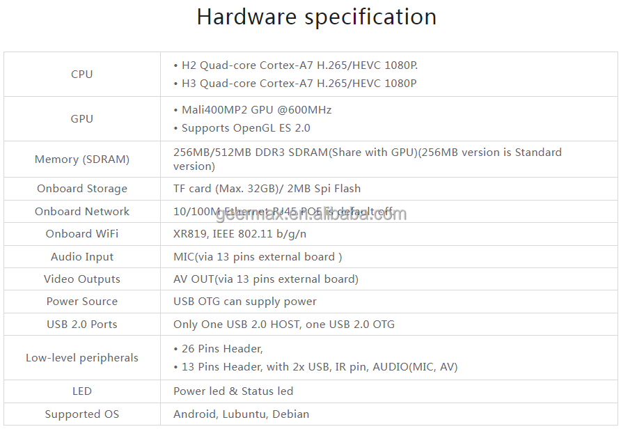 ผลิตภัณฑ์:ORANGE Pi ZERO H3 512MB DDR3 SDRAM