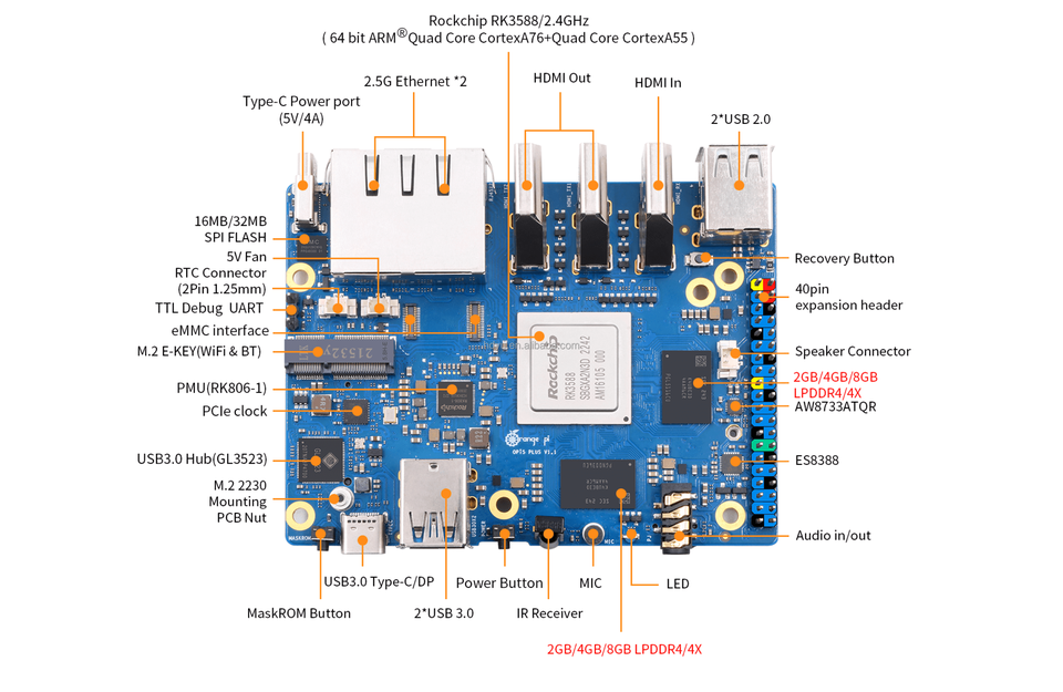 Pi5ส้ม Ruixin ไมโคร RK3588S 8แกน NPU 4G/8G/16G หน่วยความจำเสริมการเรียนรู้ Orange Pi 5