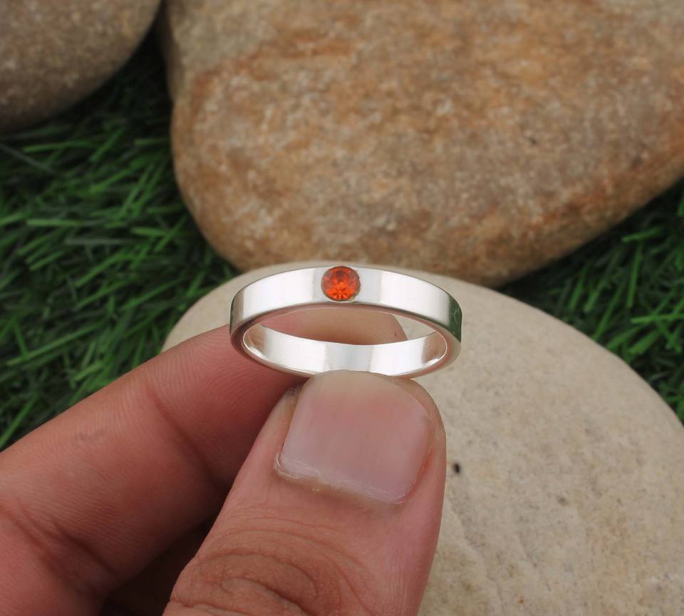 แหวนควอตซ์สีส้มคลาสสิก 925 เงินสเตอร์ลิงอัญมณีสำหรับผู้หญิงงานฝีมือประณีตเครื่องประดับงานแต่งงานวันครบรอบวันเกิด