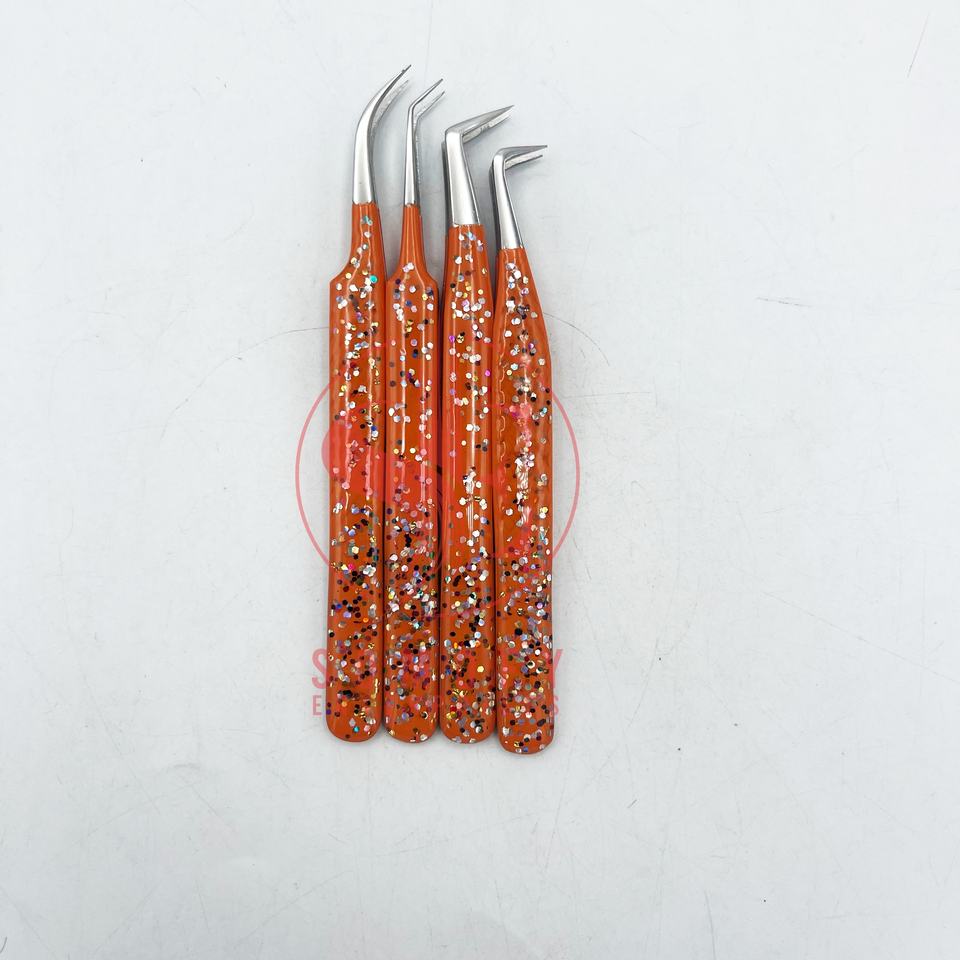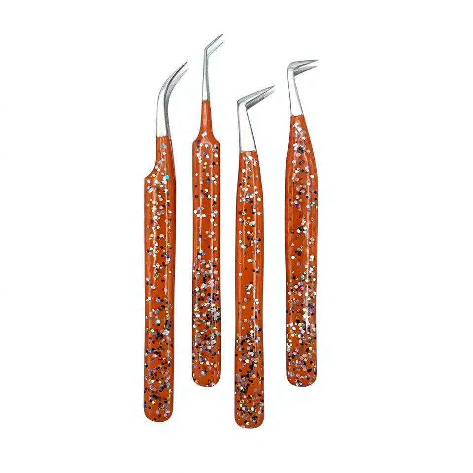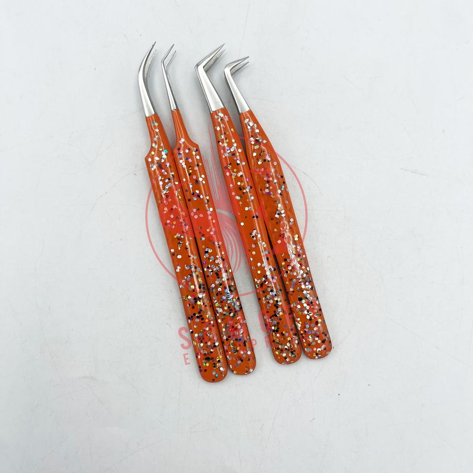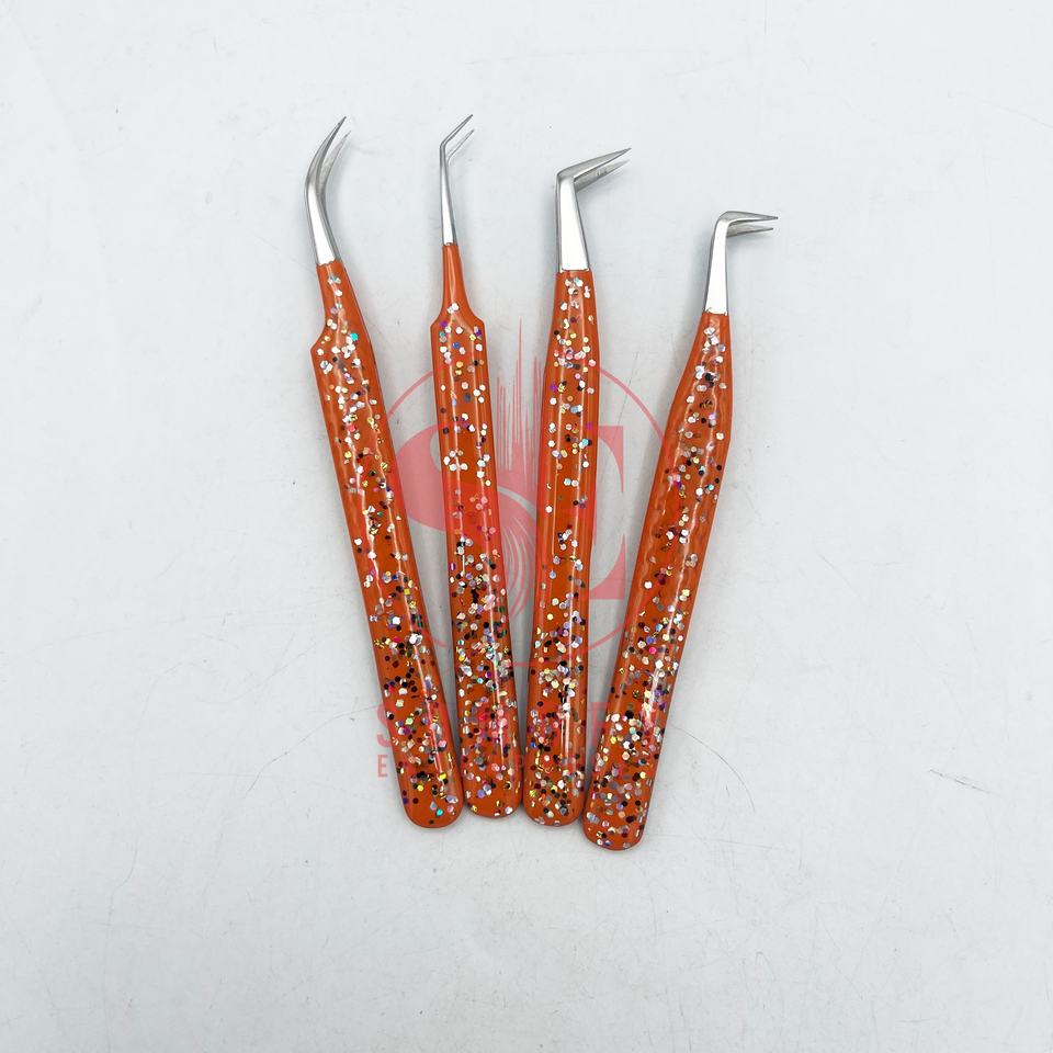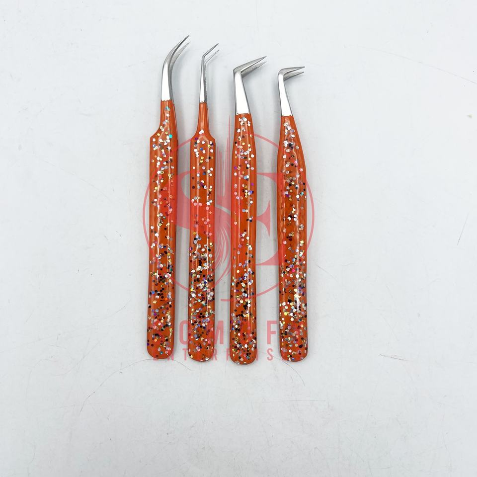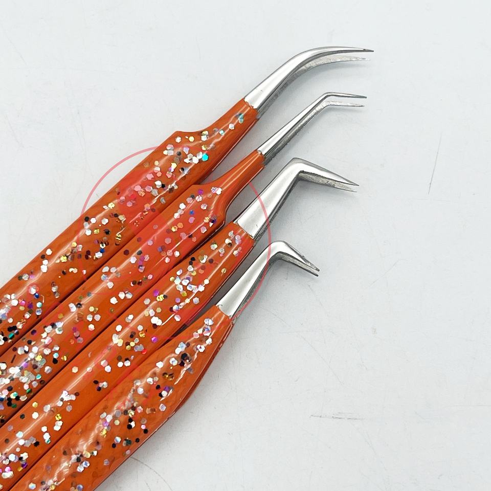 แหนบติดขนตาปลายแหลม ป้องกันไฟฟ้าสถิต ทำจากสแตนเลสสีเงินเคลือบยางสีส้ม คุณภาพระดับมืออาชีพ จากบริษัทโซโมฟี่ เอ็นเตอร์ไพรส์