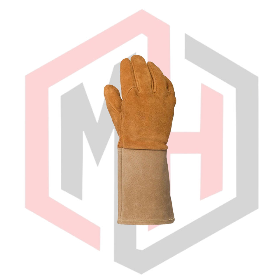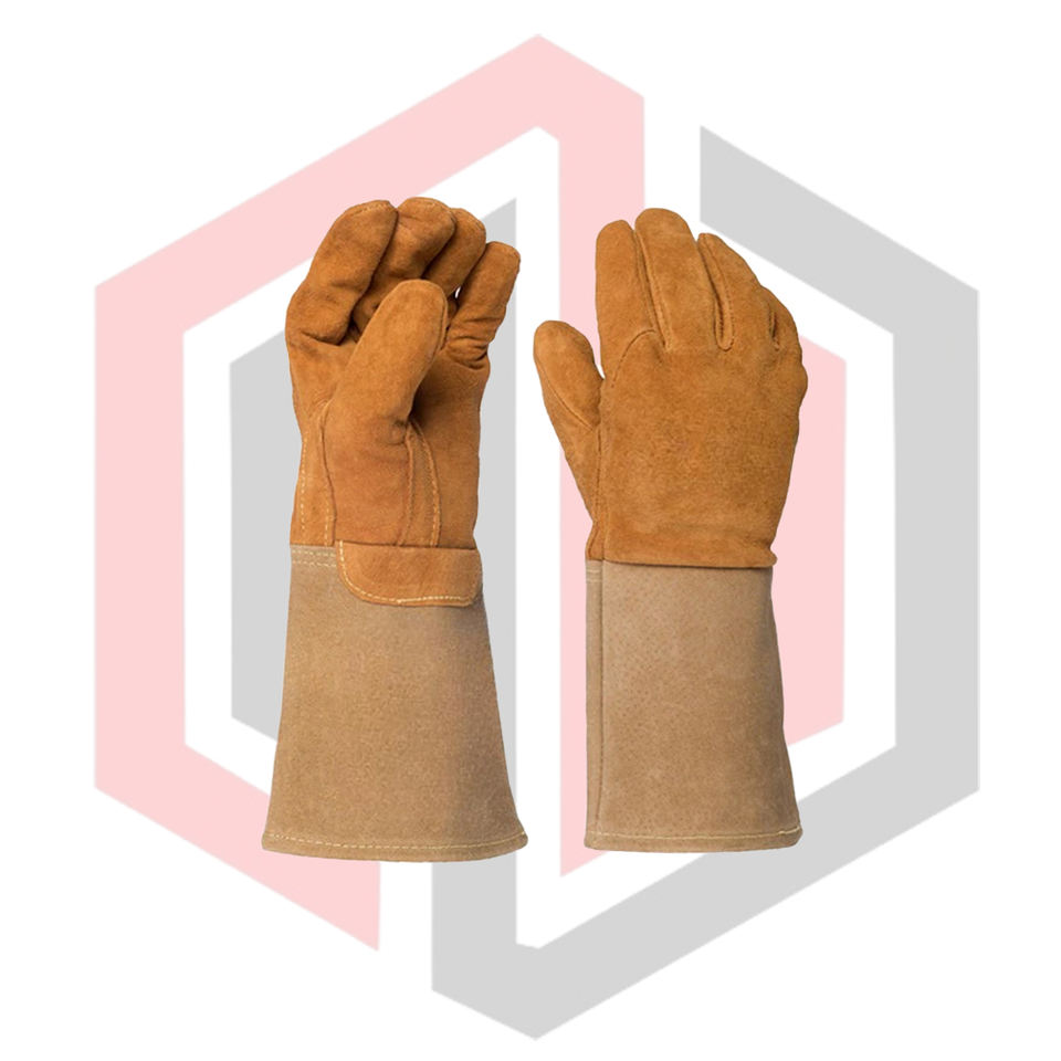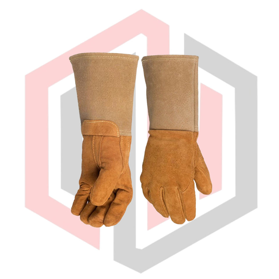 ถุงมือเชื่อม TIG สีส้ม หนังหมู กันลื่น ไม่มีส่วนผสมของซิลิโคน โพลีเอสเตอร์เคลือบไนไตรล์เรียบ ป้องกันการบาด ป้องกันไฟฟ้าสถิต ทนความร้อน