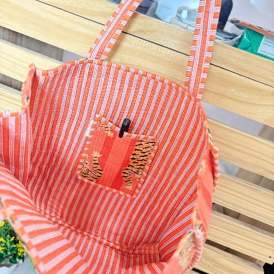 ชื่อ:กระเป๋าโท้ทลายควิลท์ Tiger Kantha
